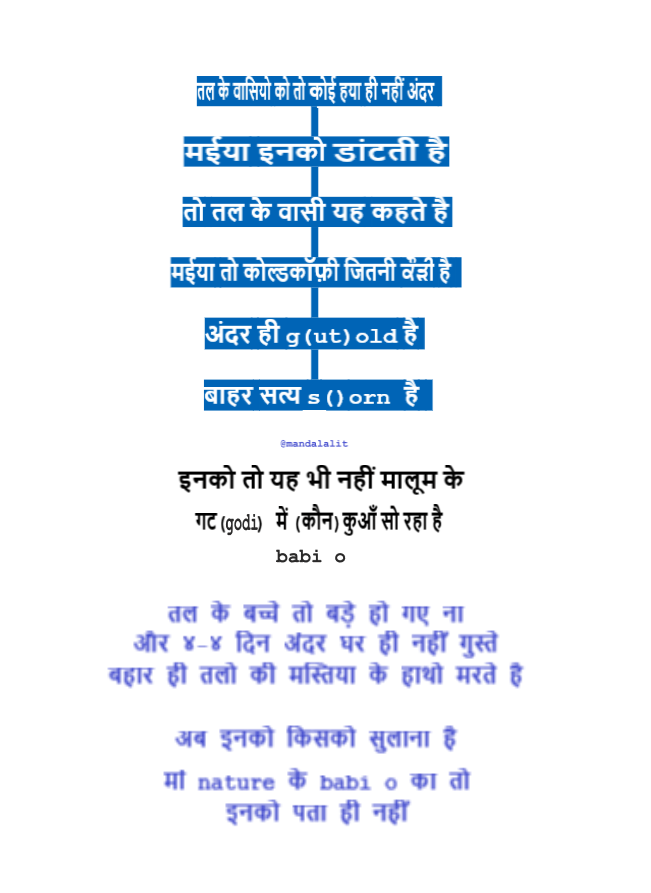 ਕੌੜੀ ਕੌੜੀ ਕੌੜੀ ਕੁੜੀ – bitter Share this: Share on X (Opens in new window) X Share on Facebook (Opens in new window) Facebook Like Loading... Related Published by mandalalit to be a within 0-one-0 is to breathe for gut alone total mother nature View all posts by mandalalit