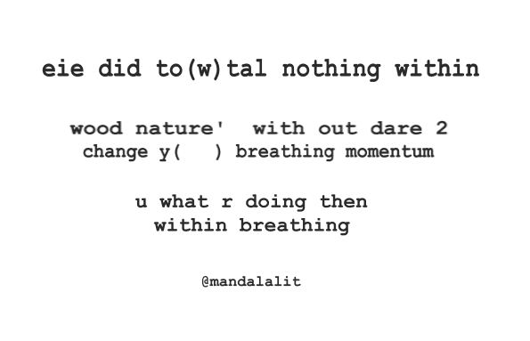a to(w)tal nothing Share this: Click to share on X (Opens in new window) X Click to share on Facebook (Opens in new window) Facebook Like Loading... Related Published by mandalalit to be a within 0-one-0 is to breathe for gut alone total mother nature View all posts by mandalalit