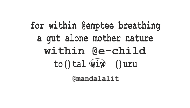 a within/with out (wiw o) breathing map w cosmos lit ~~~ a wiw o liberated breathing passage for micro breathings within lap of to(w)tal mother nature
