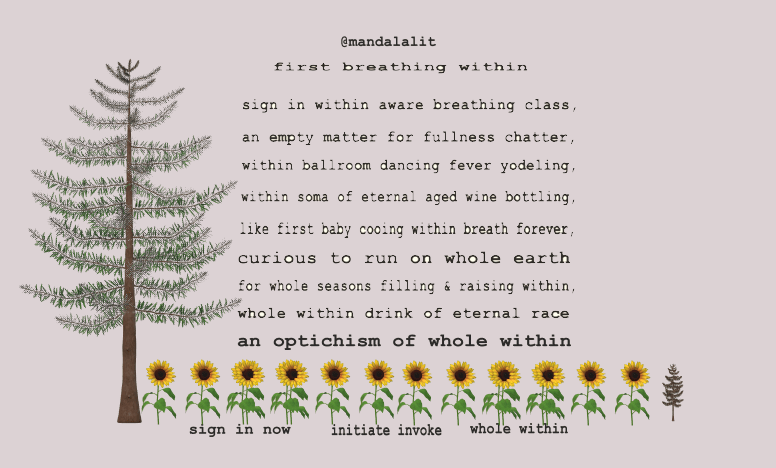 a within/with out (wiw o) breathing map w cosmos lit ~~~ a wiw o liberated breathing passage for micro breathings within lap of to(w)tal mother nature